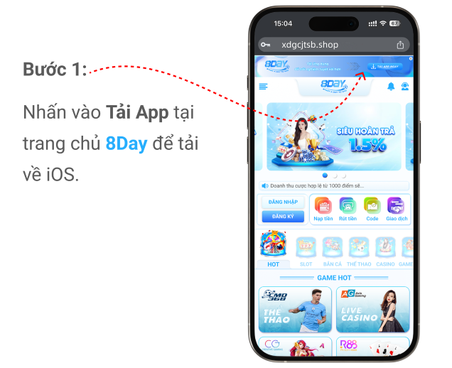 Buóc 1:Nh?n vào T?i App t?i trang ch? 8Day ?? t?i v? iOS